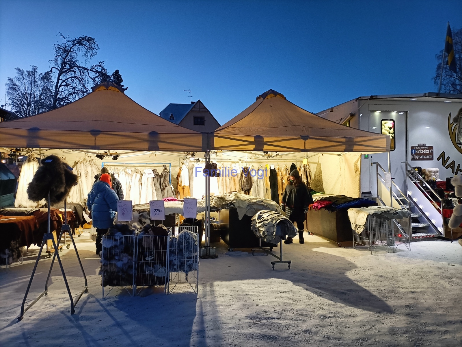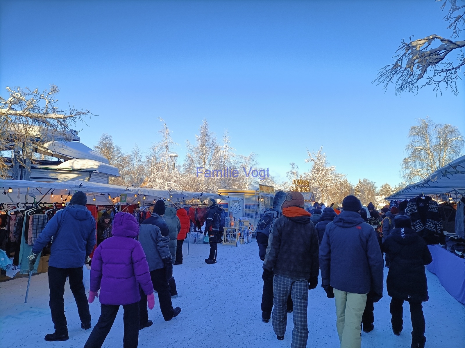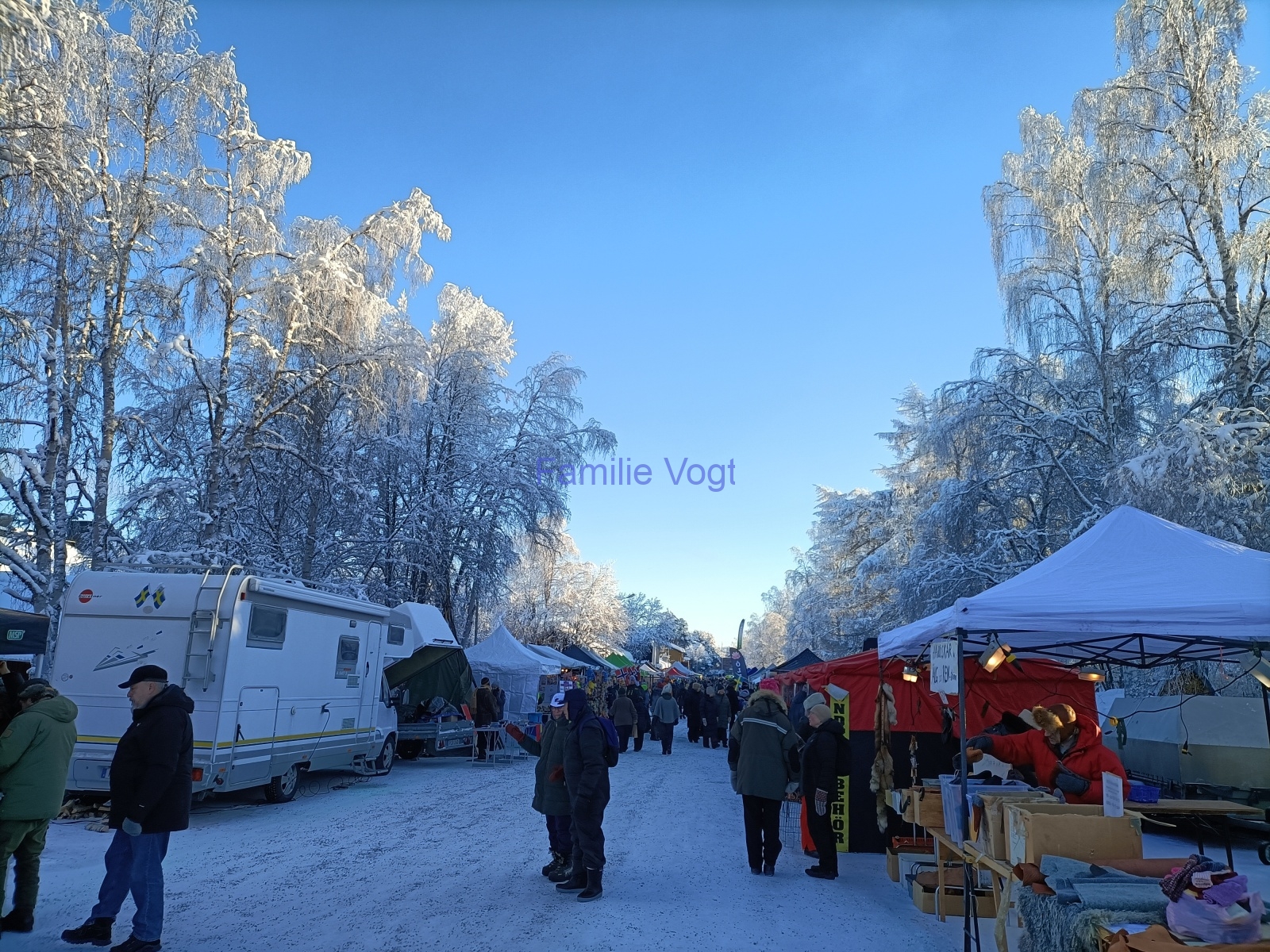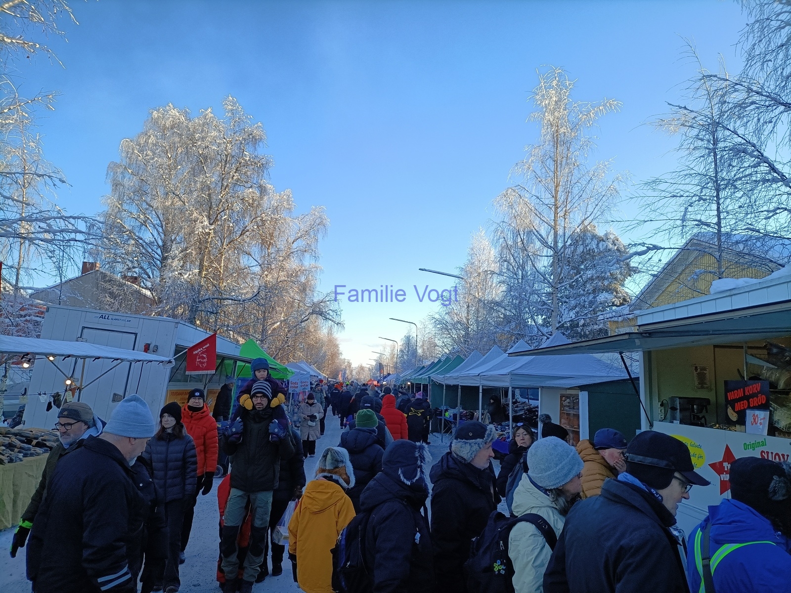 Wir sind nach Jokkmokk zu dem jährlich stattfindenden Samimarkt gefahren. Jokkmokk liegt direkt am Polarkreis und ist das kulturelle Zentrum des Sami in Schweden. Das Pendant dazu in Norwegen ist das Samizentrum in Karasjok. An diesem Markt kann man viel Handwerkskunst bestaunen und kaufen, es gibt viele kulinarische Angebote von einheimischen Speisen und ganz besonders die Rehtirennen auf dem zugefrorenen See Talvatissjön.