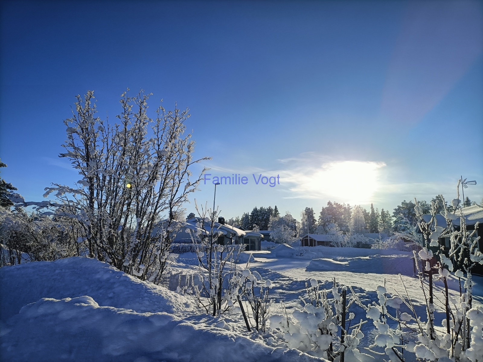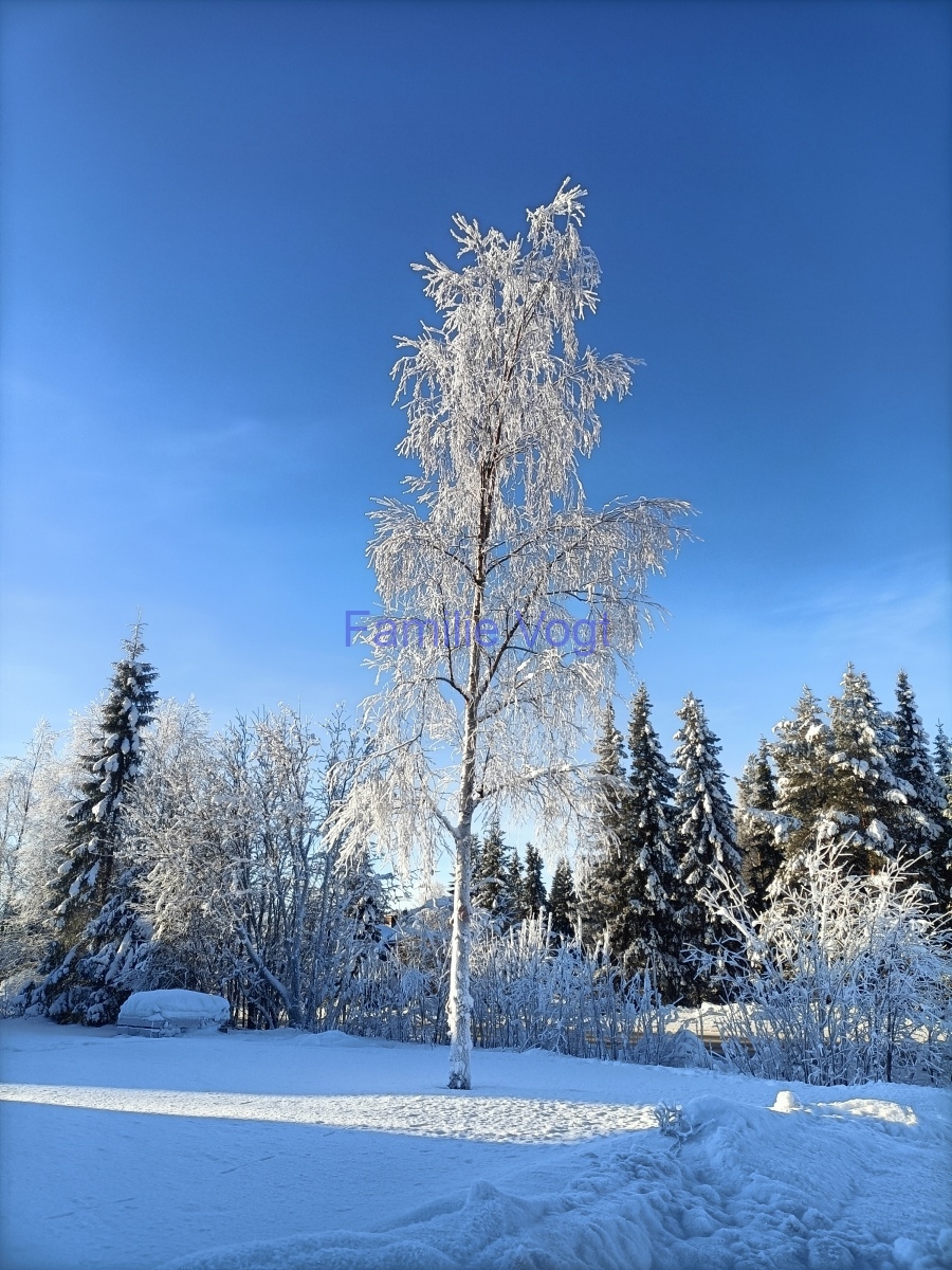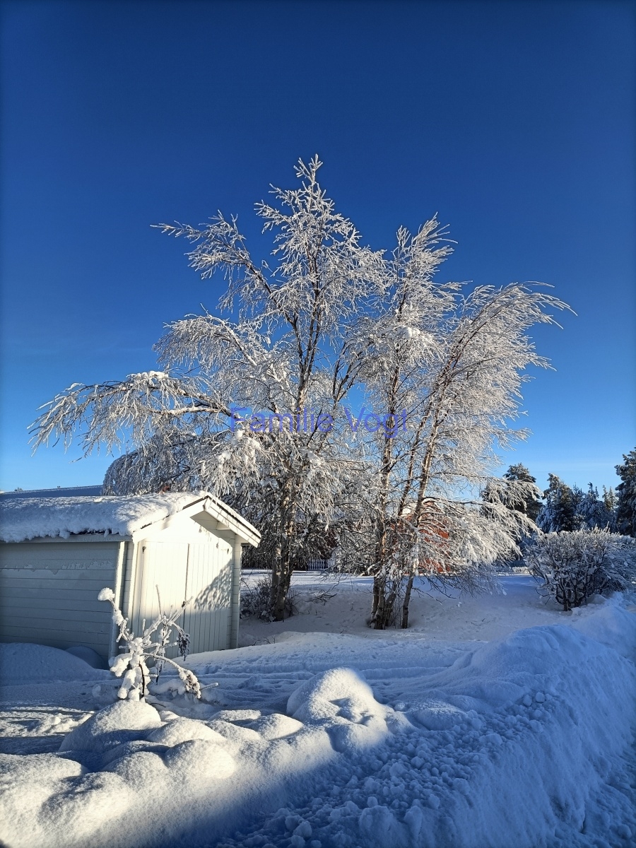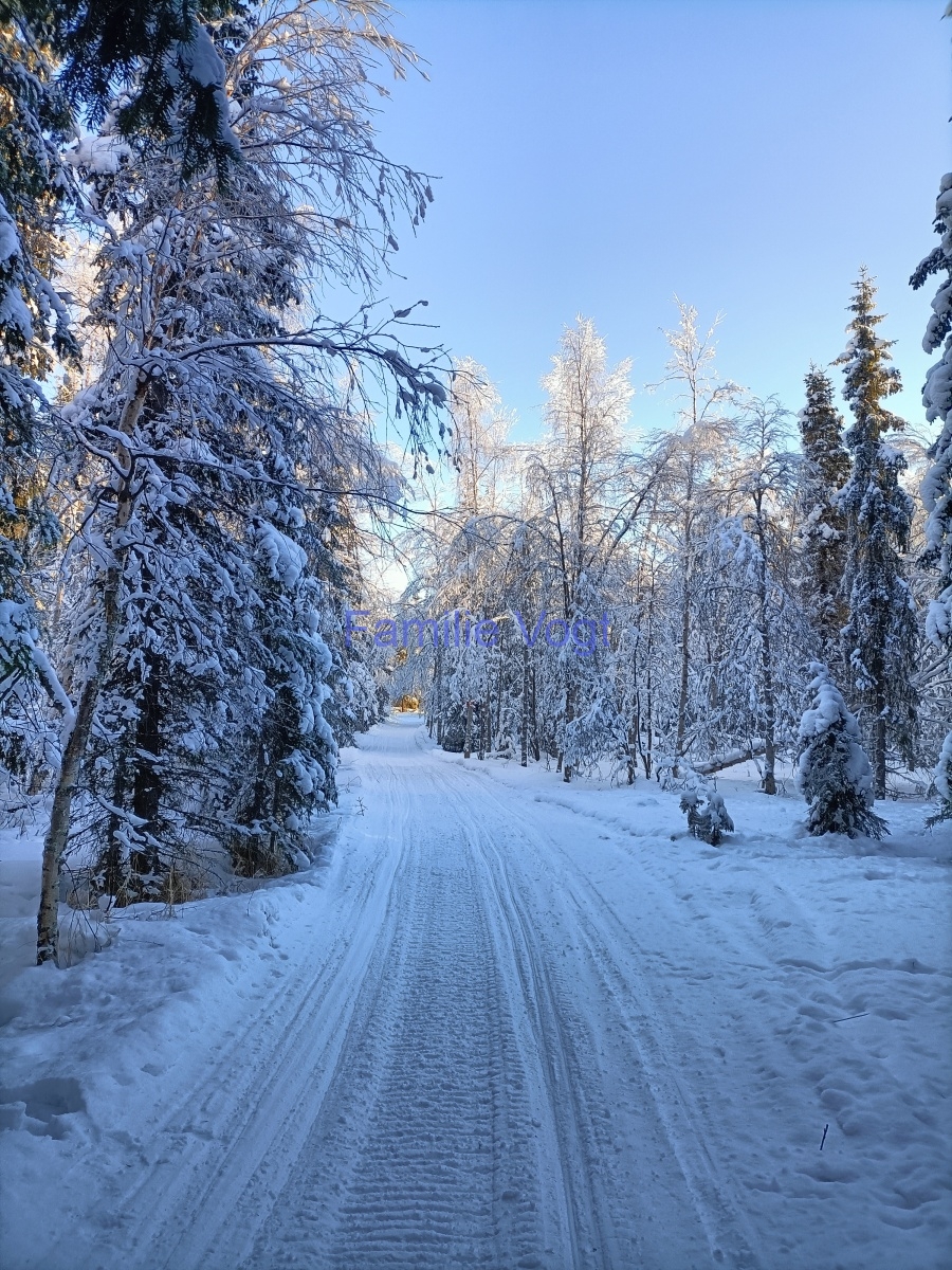 Aktuell zeigt sich das Wetter in der Mehrheit von seiner besten Seite, Sonne pur, toller Schnee und eine super schöne Winterlandschaft. Die Temperaturen sinken in der Nach bis ca. -32°C und pendeln sich am Tag bei -21 … -25°C ein. Hier folgen einige Bilder dazu.